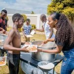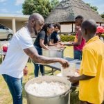 Os músicos “Mr.Bow, Liloca, Mabermuda e Yazy” prepararam as refeições e serviram aos meninos numa tarde que não faltou conversa, música e dança.